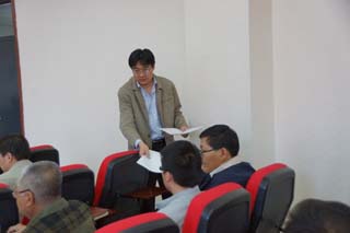 考察組組長、學(xué)校黨委組織部部長張士偉主持會議 |