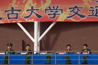 中國人民解放軍陸軍預備役步兵第三十師營長石道遠(右圖左二),內蒙古玉泉區(qū)人民武裝部軍事參謀菅曉峰中尉(左圖左一),內蒙古大學黨政辦公室副主任溫毅剛(左圖右一),內蒙古大學體育教育部副部長王文杰(左圖右二),黨委副書記、紀委書記白托婭(右圖左一),副院長武鈞(右圖右二),黨委委員、科研處處長李宏教授(右圖右一),黨委委員、教務處處長趙志蒙教授(左圖左二) | |
