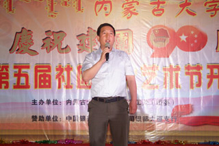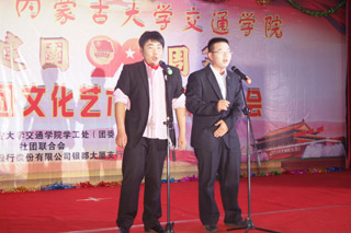 學(xué)工處副處長高飛在晚會上致詞,他說:"共產(chǎn)主義青年團(tuán),是共產(chǎn)黨領(lǐng)導(dǎo)的先進(jìn)青年的群眾組織,是廣大青年在實(shí)踐中學(xué)習(xí)共產(chǎn)主義的學(xué)校,是共產(chǎn)黨的得力助手和后備軍。社團(tuán)文化藝術(shù)節(jié)是校園文化的重要組成部分,當(dāng)代青年學(xué)生,不僅要有堅(jiān)定的理想信念,高尚的道德情操,扎實(shí)的文化功底,更需要有良好的禮儀素養(yǎng),儒雅的藝術(shù)底蘊(yùn),創(chuàng)新的藝術(shù)構(gòu)想。我們之所以堅(jiān)持不懈開展各類校園文化活動,年年舉辦文化藝術(shù)節(jié),就是要提高學(xué)院學(xué)生綜合素質(zhì),讓每個(gè)學(xué)生都能健康成長,成為適應(yīng)新世紀(jì)多元化發(fā)展的有用人才。社團(tuán)文化藝術(shù)節(jié)期間還包括敬老院送溫暖,共青團(tuán)知識競賽、歌手大賽、詩歌評比、趣味游戲等活動。希望更多的同學(xué)加入我們的社團(tuán),加入我們的社團(tuán)活動,讓社團(tuán)成為學(xué)院校園文化的主力軍。預(yù)祝內(nèi)蒙古大學(xué)交通學(xué)院慶祝建團(tuán)90周年暨第五屆社團(tuán)文化藝術(shù)節(jié)圓滿成功。"