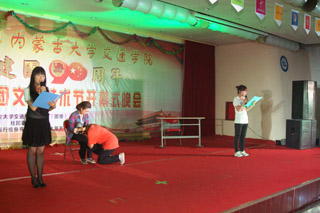 2012年5月8日晚7:00,學(xué)院在交通樓四樓多功能廳舉辦了內(nèi)蒙古大學(xué)交通學(xué)院慶祝共青團(tuán)建團(tuán)90周年暨“顯社團(tuán)原色 展交院風(fēng)采”第五屆社團(tuán)文化藝術(shù)節(jié)開幕式。