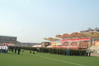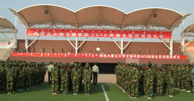 2012年8月25日上午8時,學(xué)院在南校區(qū)操場上舉行2012級新生軍訓(xùn)動員大會。玉泉區(qū)人民武裝部部長王永軍,中國人民解放軍某部教導(dǎo)員鄧愛民,內(nèi)蒙古預(yù)備役步兵第三十師營長石道遠,我院院長柴金義,常務(wù)副院長董平,黨委副書記、紀委委書記白托婭,副院長孫恒,黨委委員、教務(wù)處處長趙志蒙出席大會。新生軍訓(xùn)教官、輔導(dǎo)員、班主任和1100名新生參加了此次大會。學(xué)工處副處長、團委副書記高飛主持大會。