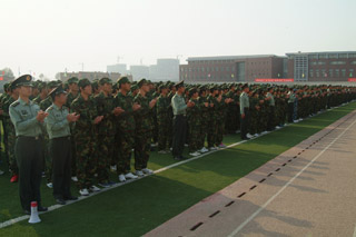 在院長柴金義“按計劃進行” 的命令下,軍訓(xùn)動員大會開始。