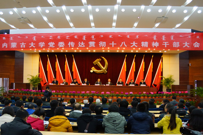 在全校干部大會(huì)上,侯元書記介紹了黨的十八大盛況;傳達(dá)了十八大的重要精神,并結(jié)合實(shí)際對(duì)十八大報(bào)告重要內(nèi)容進(jìn)行了解讀;傳達(dá)了內(nèi)蒙古自治區(qū)黨委書記胡春華在黨的十八大內(nèi)蒙古代表團(tuán)全體會(huì)議上的講話精神和教育部黨組關(guān)于教育系統(tǒng)認(rèn)真學(xué)習(xí)貫徹黨的十八大精神的通知精神。