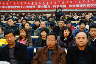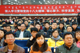 為了深入學(xué)習(xí)貫徹黨的十八大精神,把我校廣大師生員工思想和行動(dòng)統(tǒng)一到黨的十八大精神上來,把力量凝聚到實(shí)現(xiàn)黨的十八大確定的各項(xiàng)任務(wù)上來,努力辦好人民滿意的教育,推動(dòng)學(xué)??茖W(xué)發(fā)展,學(xué)校于2012年11月20日下午3:00在學(xué)術(shù)會(huì)議中心9號(hào)會(huì)議室召開全校傳達(dá)貫徹黨的十八大精神干部大會(huì)。