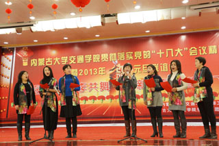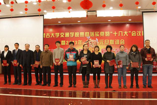 12月27日下午,學(xué)院在交通樓多功能廳舉辦2013年新年聯(lián)誼會(huì)暨工會(huì)表彰大會(huì)。我院黨委書(shū)記孫智憑,院長(zhǎng)柴金義,常務(wù)副院長(zhǎng)董平,副院長(zhǎng)孫恒,副院長(zhǎng)武鈞,黨委委員、科研處處長(zhǎng)李宏,黨委委員、教務(wù)處處長(zhǎng)趙志蒙出席表彰大會(huì)并為獲獎(jiǎng)單位和個(gè)人頒獎(jiǎng)。黨委副書(shū)記、紀(jì)委書(shū)記白托婭主持會(huì)議。全院200余名教職工參加了聯(lián)誼會(huì)。