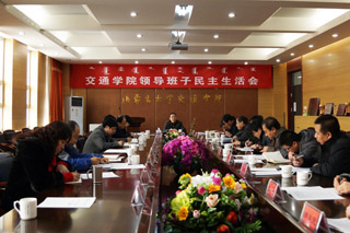 1月14日上午,按照上級文件精神,結合學院實際,交通職業(yè)技術學院(交通學院)黨委在南校區(qū)交通樓A439會議室召開了主題為“學習貫徹黨的十八大精神,推動學院內(nèi)涵建設與發(fā)展”領導班子民主生活會。 學校黨委書記侯元 會場 交通學院院長柴金義 學校黨委組織部部長張士偉 會場 會場