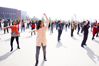為增強(qiáng)我院廣大教職工的身體素質(zhì),培養(yǎng)健康的運(yùn)動(dòng)習(xí)慣,保持充沛的工作精力,形成良好的精神狀態(tài), 3月31日上午,學(xué)院組織教職工50余人在交通樓樓前廣場(chǎng)教做第十套廣播體操。