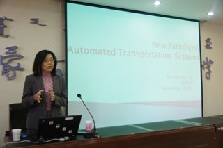 2014年11月5日上午,學(xué)院邀請美國新澤西理工大學(xué)土木與環(huán)境工程系交通規(guī)劃劉榮芳教授在交通樓A351會議室做了題為“新范式—自動交通運(yùn)輸系統(tǒng)(New Paradigm: Automated Transportation Systems)”的學(xué)術(shù)報(bào)告。運(yùn)輸工程系副主任(主持工作)王征宇副教授主持講座。運(yùn)輸工程系、科研處及相關(guān)學(xué)科的教師和學(xué)生100多人聽取了講座。
