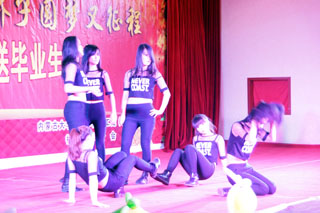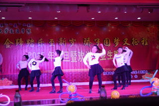 晚會以舞蹈《開門紅》正式拉開帷幕。共分為兩個篇章:以歌曲《拜新年》、舞蹈《閃耀的世界》、啞劇《診室風波》、舞蹈《宮商角徵羽》、歌曲《我的父親是牧馬人》、小品《鬧元旦》表達第一篇章“駿馬踏蹄辭舊歲,羚羊翹首迎新來”,表達了對同學們新年的美好祝愿。同學們用自己的表演方式給老師和同學們帶來快樂,精彩的演出更是讓觀眾們掌聲不斷;以歌曲《畢業(yè)歌》、舞蹈《黎明》、朗誦《匆匆那年》、歌伴舞《為你寫詩》、小品《與青春有關(guān)的日子》、歌曲《相親相愛》詮釋了第二篇章“驕子圓夢展宏圖,學府育才奏華章”,表達了對畢業(yè)生的不舍以及母校師生對他們的祝福。畢業(yè)生代表們,用舞蹈、朗誦、小品的精彩演出,告訴母校,他們的不舍和對母校真摯的祝愿。在觀看過程中,很多畢業(yè)生都留下了眼淚。